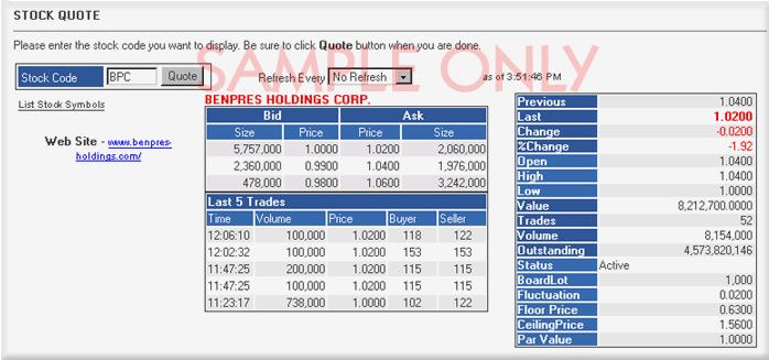 4. Static Information - displays the important trading related information for the selected stock with the following headings: